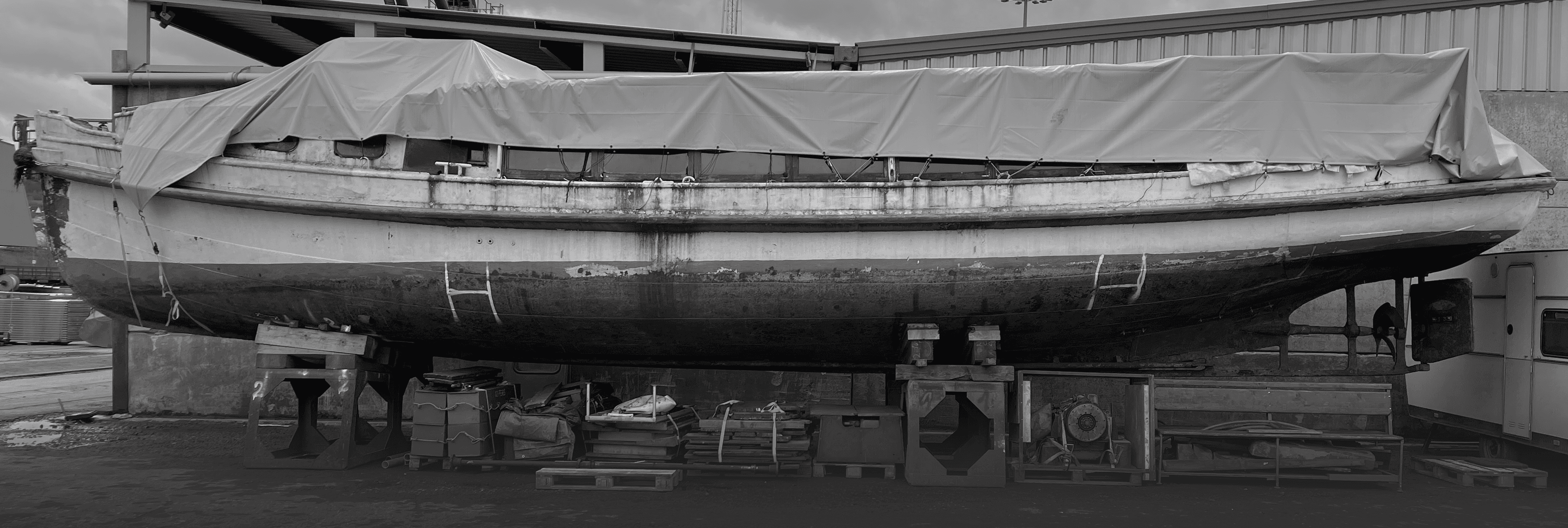 According to the examination report by the Schiffsuntersuchungskommission BG Verkehr Regionalabteilung Hamburg, the inner floor of the ship was sealed, allowing only an exterior examination of the hull. Concrete had been poured into the bottom of the hull to balance it, leading to the recommendation of repair by doubling, which was carried out at the stern. The prescribed minimum thickness of the steel plates is 3.1 mm for the chine and 3 mm for the rest of the hull. We have emptied and cleaned the inside of the ship, removing the engine, exhaust, and cooling systems. Additionally, the concrete was removed, the inside of the hull was cleaned, and loose paint and rust were eradicated to fully assess the ship's condition and determine the necessary repairs. Due to health concerns and the COVID-19 crisis, the ship had been largely unused and neglected by its previous owners. We performed an initial ultrasound measurement of the plate thickness, revealing that while most of the hull is in fairly good shape, there are areas of serious rust damage primarily caused by rainwater leaking through the roof into the sealed floor. The ship was originally constructed with plate thicknesses averaging 4.5 to 5.5 mm, riveted to the frames. To restore the hull, we will cut out the damaged plates and weld in new ones. Despite the commission's recommended minimum thickness, we have decided to use a minimum of 4 mm thickness for greater durability.The next steps include a second ultrasound measurement of the hull, followed by a crucial LiDAR 3D scan. This scan will produce a precise 3D model of the entire hull, serving as a major reference for the restoration process.
